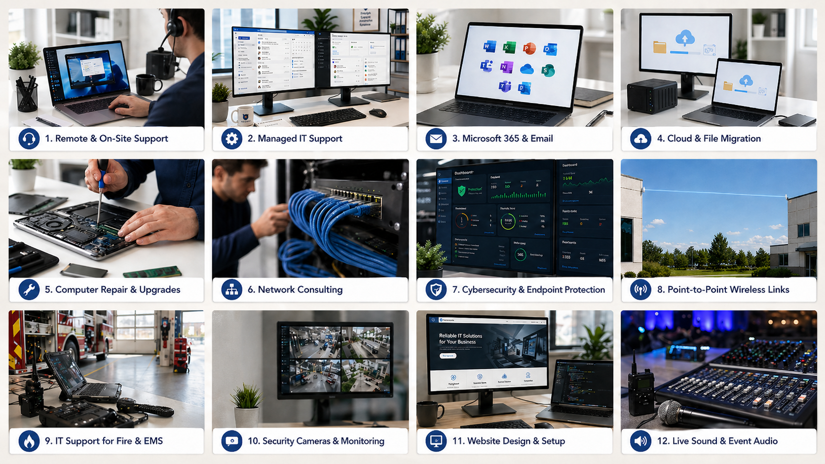 Technology should help your business run better, not slow it down. We provide practical IT support, network installation, cybersecurity, cloud services, and technology consulting for small businesses, schools, fire departments, and local organizations.